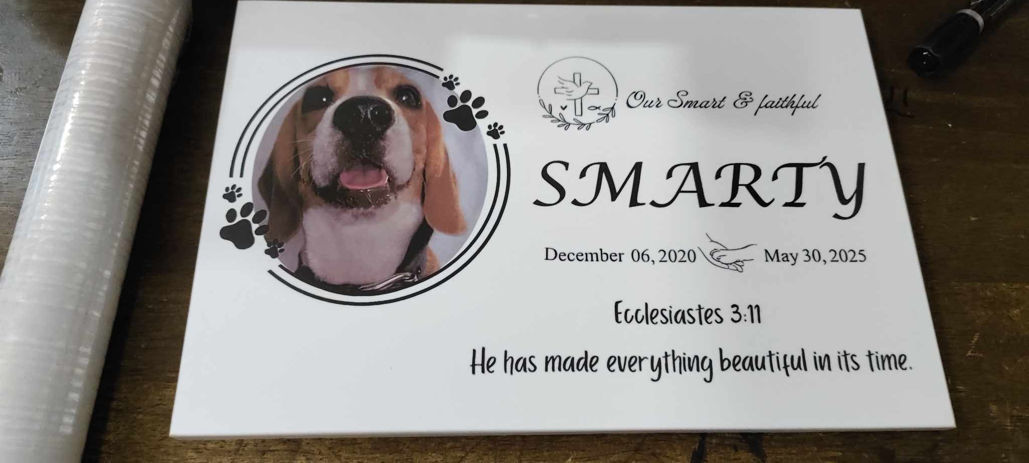 大 20〜30cmのフルカラー写真陶板と御影石にて作成