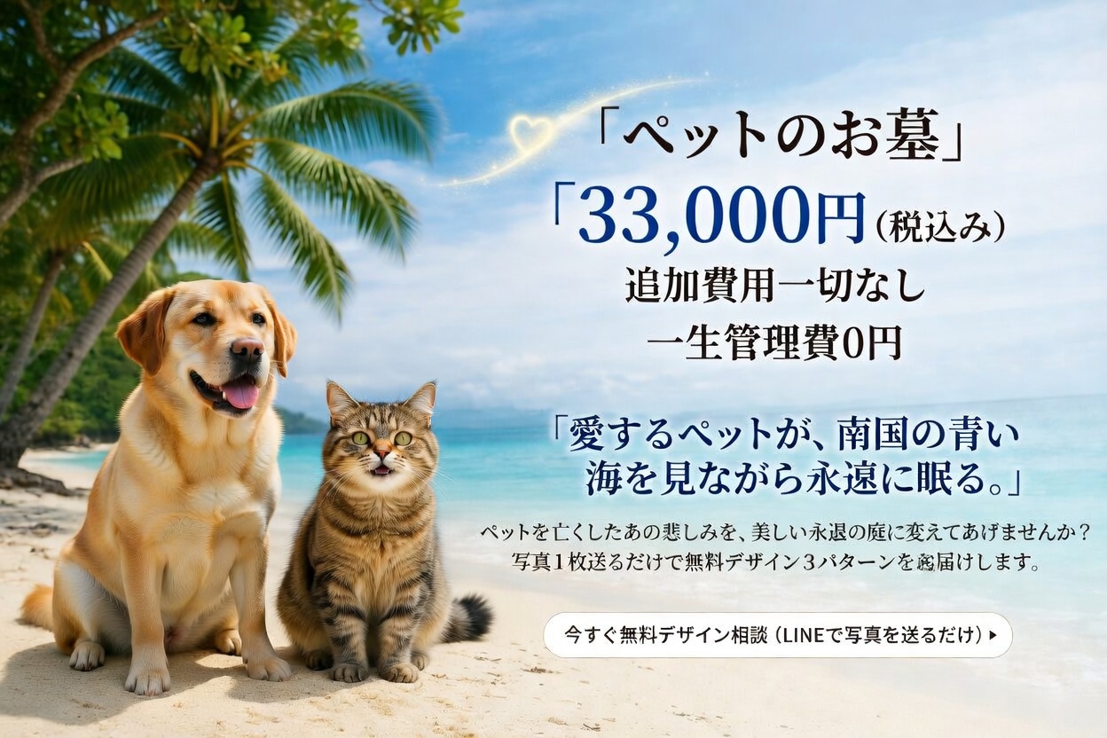 「愛するペットが、南国の青い海を見ながら永遠に眠る。