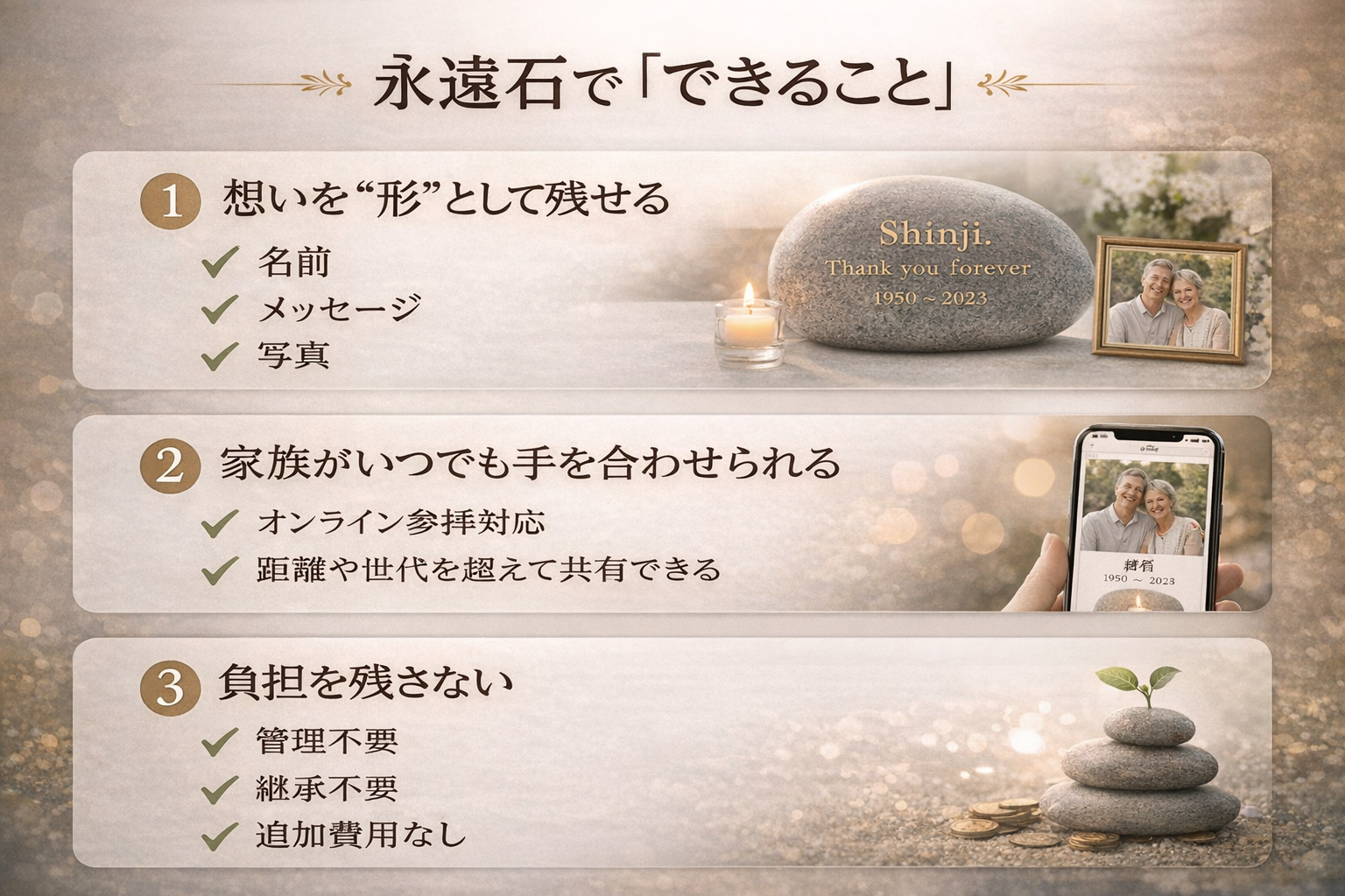 A. 永遠石は供養義務や継承を前提としない「記念のための石」です。