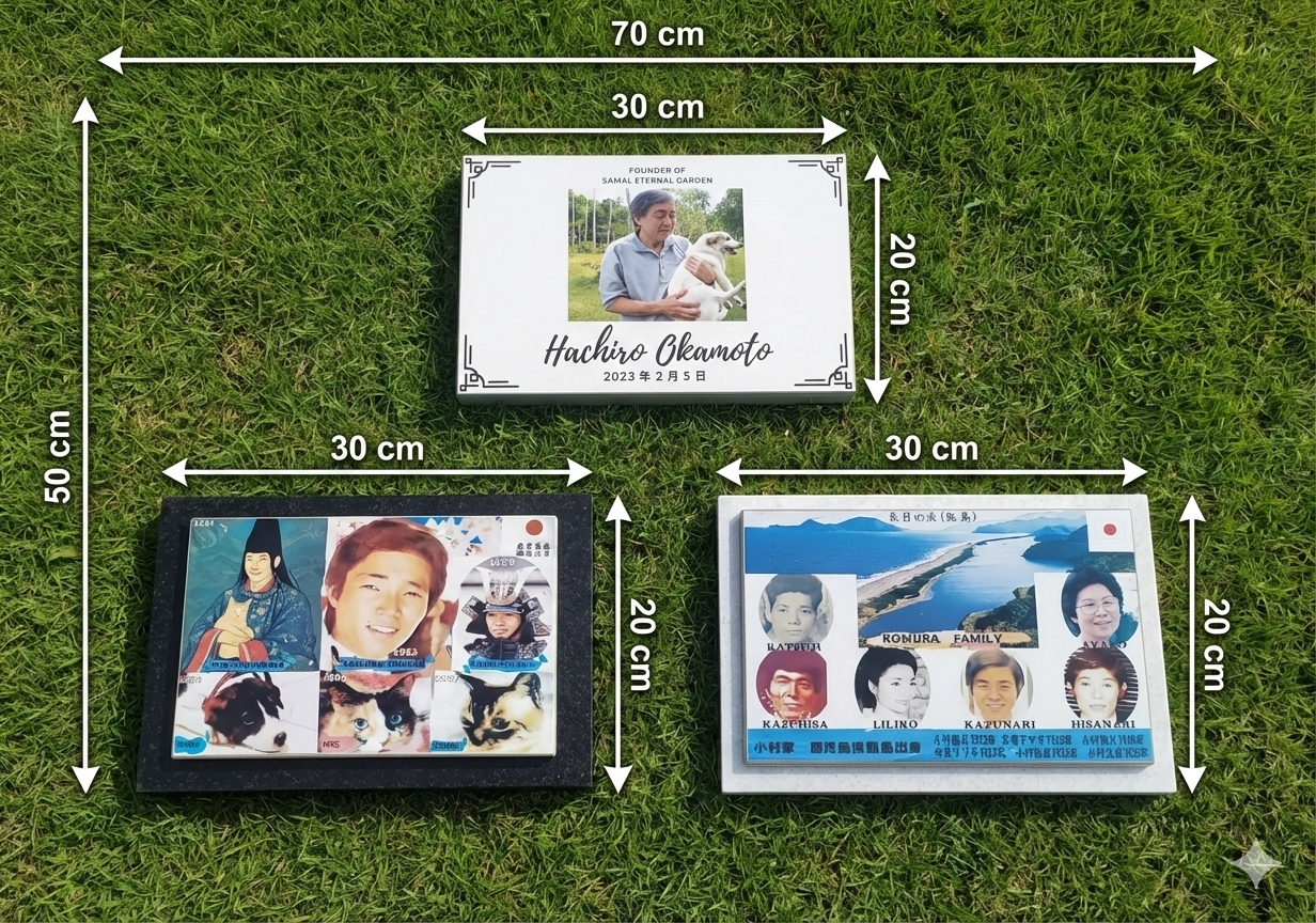 (スーパープレミアム区画永代使用権付帯サイズ70×40cm、記念碑サイズ30x20cm)