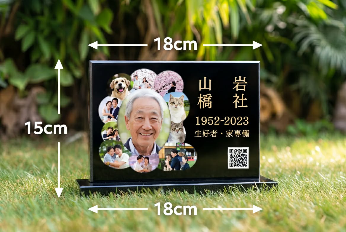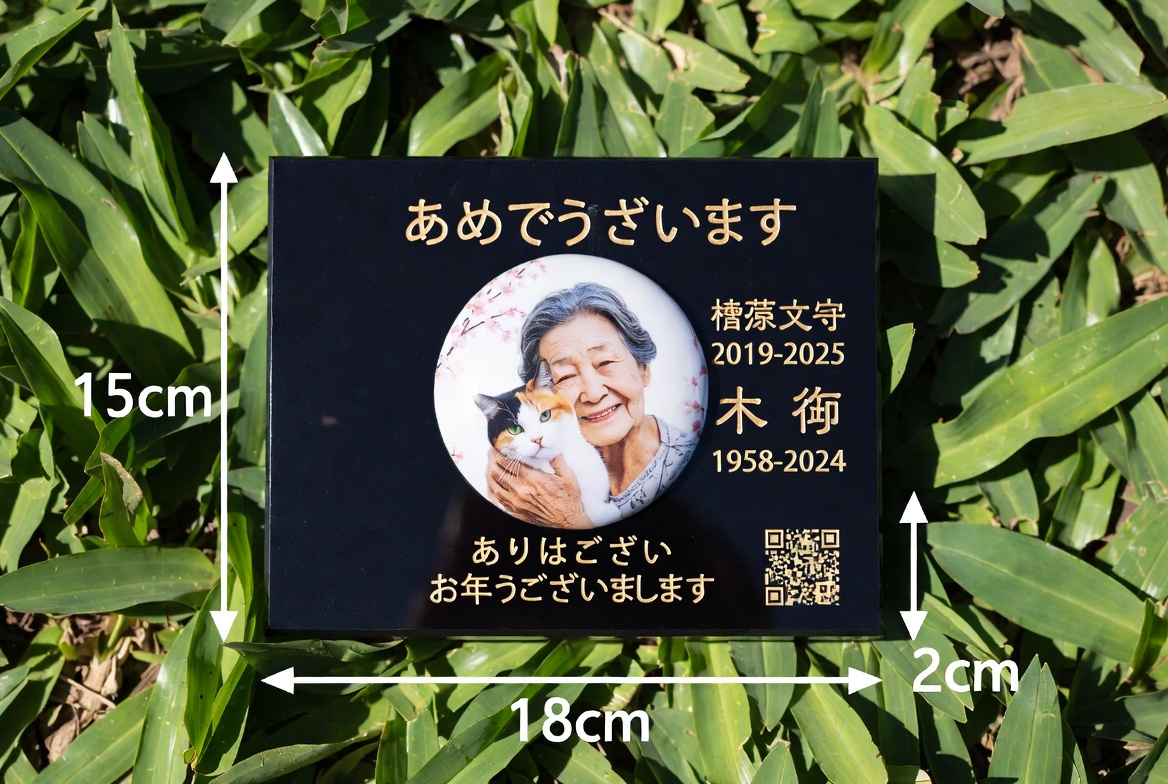 記念石イメージ(記念石20×20cm/写真陶板15×18cm)